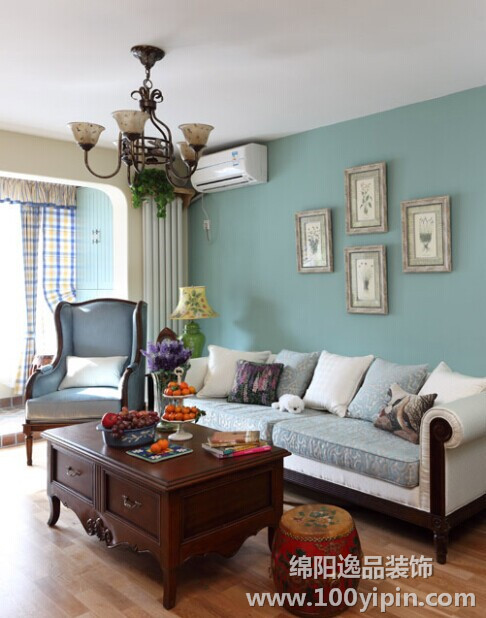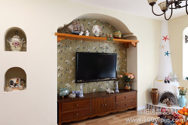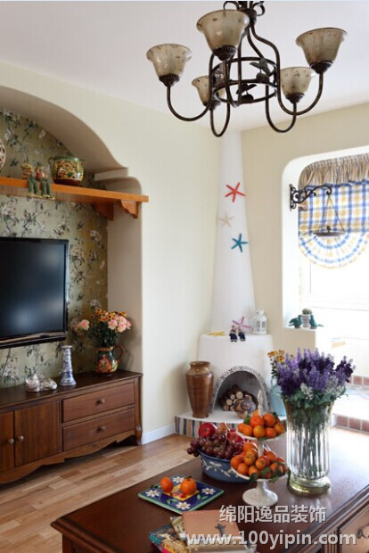 案例为地中海风格,整体色调以黄白为主,适当加以淡蓝色配合。造型上所有门口导成圆角,利用过道处做成连续拱券的造型元素,更好的表达地中海风格的韵味。阳台垭口新建一小截矮墙,和旁边的壁炉相互呼应,壁炉内的原木和旁边的陶罐配以白色的壁炉,整体上给人一种原始,古朴的美。地面使用地板和仿古砖的综合运用,使地面既华丽又古朴,体现出浓厚的地中海特色。