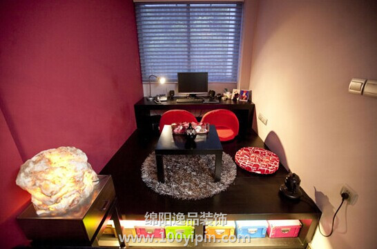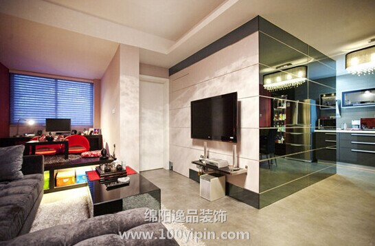 >> 作品案例 >> 逸品装饰——红色背景墙,59平米时尚装修
