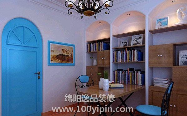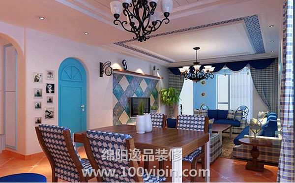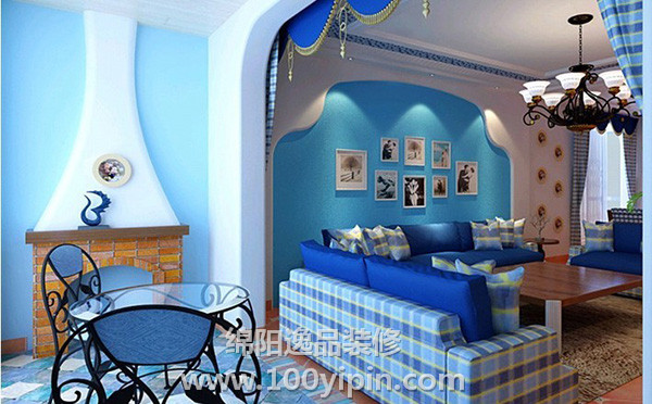 房间的整体色调就是蓝白亮色,如同希腊靠海的建筑一般,很清新的赶脚。壁炉的设计,还有船舵的小装饰,都比较能凸显欧式风格。