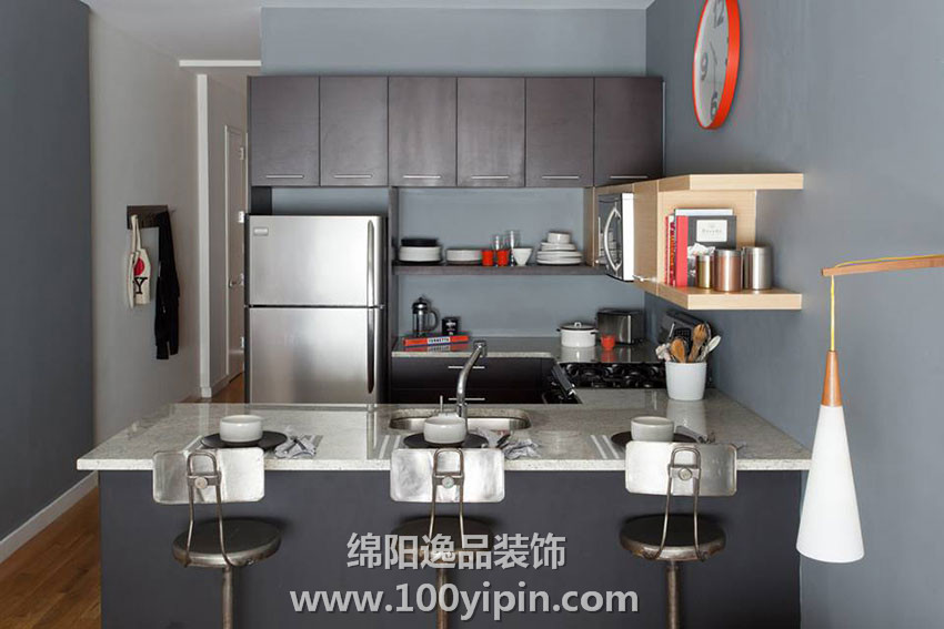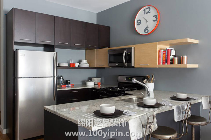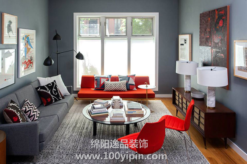 绵阳逸品装饰装修 97平米深灰色都会风公寓装修装潢设计