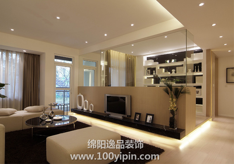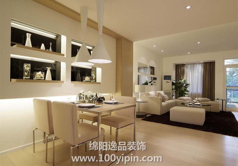 此户型为现式风格,简洁明快。现代风格的设计体现的是设计师的设计能力,如何运用极简的色调和搭配打造出温馨实用又有品味的家装。客厅直线造型明亮色为主基调,局部电视背景墙为点缀,开敞式的餐厅和书房,明显的装饰功能分区,实用简洁。空间感更加强烈创造出一个会客休息理想空间。再配上简单纯白的吊灯,简洁中不乏品味。随着社会的进步,噪杂的都市生活、繁忙的工作,让人偶感疲倦。本案设计师用现代风格打造时尚白领公寓,简约、大气、舒适、温馨,极具线条感。