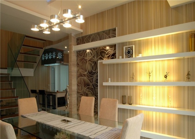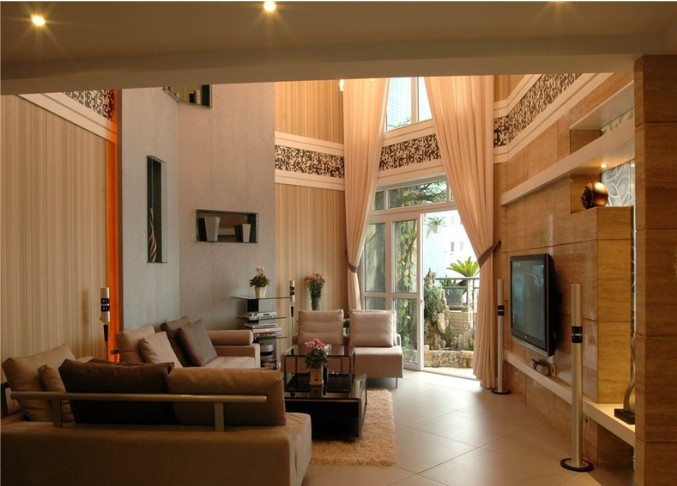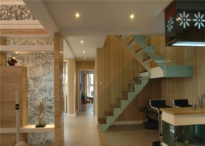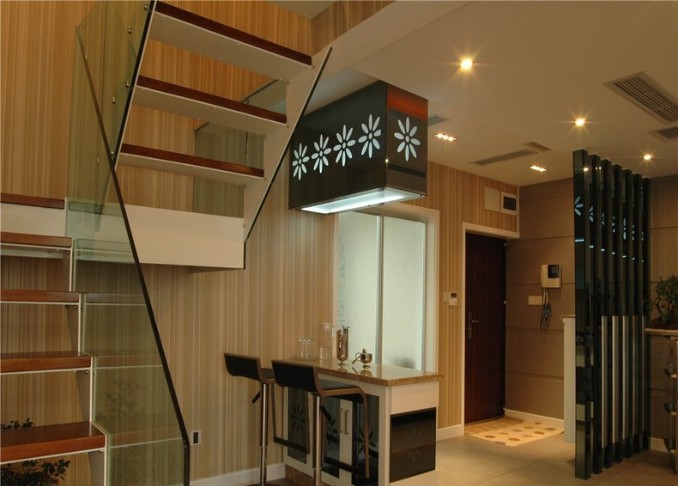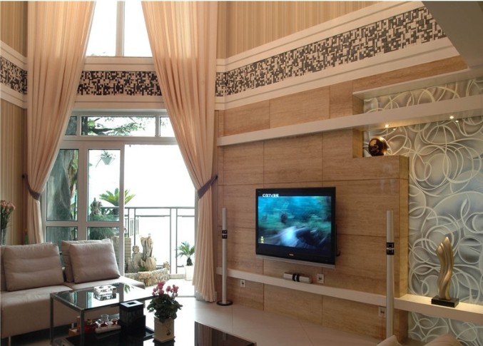 直通房顶的客厅看起来很是高档大气,暖色调的装修能满足大多数人对温馨感官的要求,简约化的设计能让人视觉放松。
