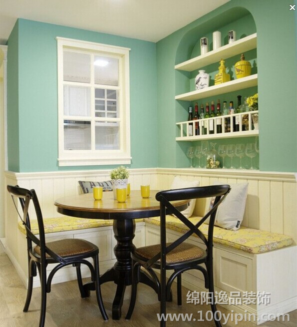 蓝绿色与黄色搭配,穿插黑色调和空间。黄色花布配基里姆格几何图形地毯,丰富布艺元素与色彩层次;收藏储纳无处不在无所不能。拆掉原先客厅小阳台的铝合金推拉门,将书房门洞与休闲区门洞统一尺寸大小与形式感,书房与休闲区之间的建筑铝合金窗拆掉,无限放大空间视觉与通透感自由度。进门口有定制的鞋柜,用餐区卡座下面可以储物,休闲区榻榻米揭开可以储物,书房与休闲区之间有卡座可以储物放书,主卧一面墙定制有一排衣柜可以储物,次卧设有吊柜和榻榻米床都可以储物,家里放东西的地方很多。