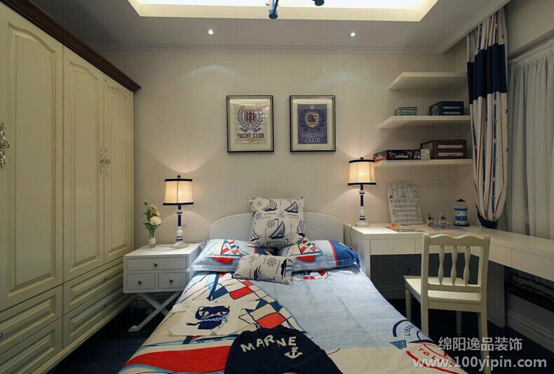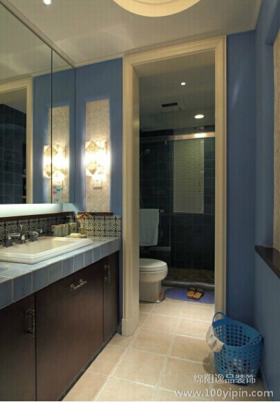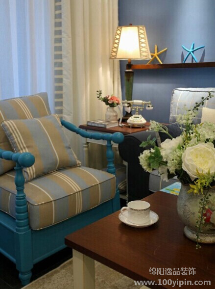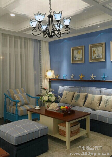 蓝与白这种色彩搭配在地中海风格装修中比较常见。设计灵感来自西班牙、摩洛哥海岸延伸到地中海的东岸希腊的建筑风格。白色村庄与沙滩和碧海、蓝天连成一片,甚至门框、窗户、椅面都是蓝与白的配色,加上混着贝壳、细沙的墙面、小鹅卵石地、拼贴马赛克、金银铁的金属器皿,将蓝与白不同程度的对比与组合发挥到极致。